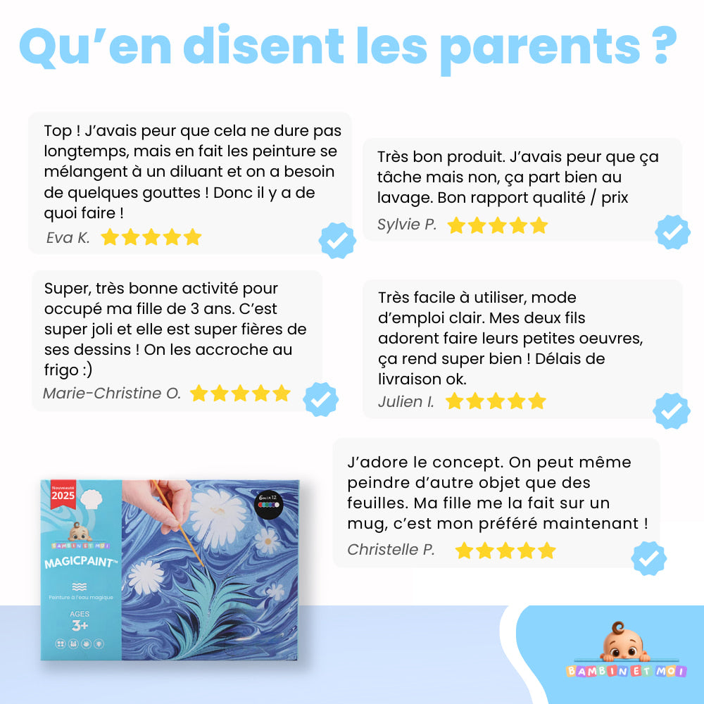 Avec notre kit de peinture magique, vos enfants peuvent laisser libre cours à leur imagination. Simple à utiliser, il leur permet de créer des motifs uniques tout en s'amusant. C'est l'activité idéale pour développer leur créativité de façon ludique.