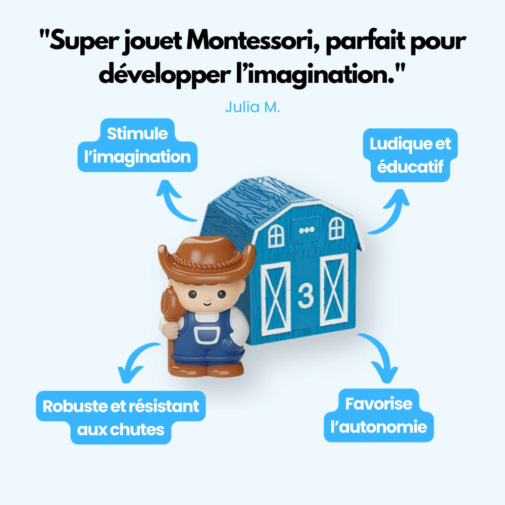 Un jouet éducatif qui transforme chaque moment de jeu en aventure ludique. Conçu selon la pédagogie Montessori, il permet aux petits de découvrir les animaux de la ferme tout en développant leur imagination.